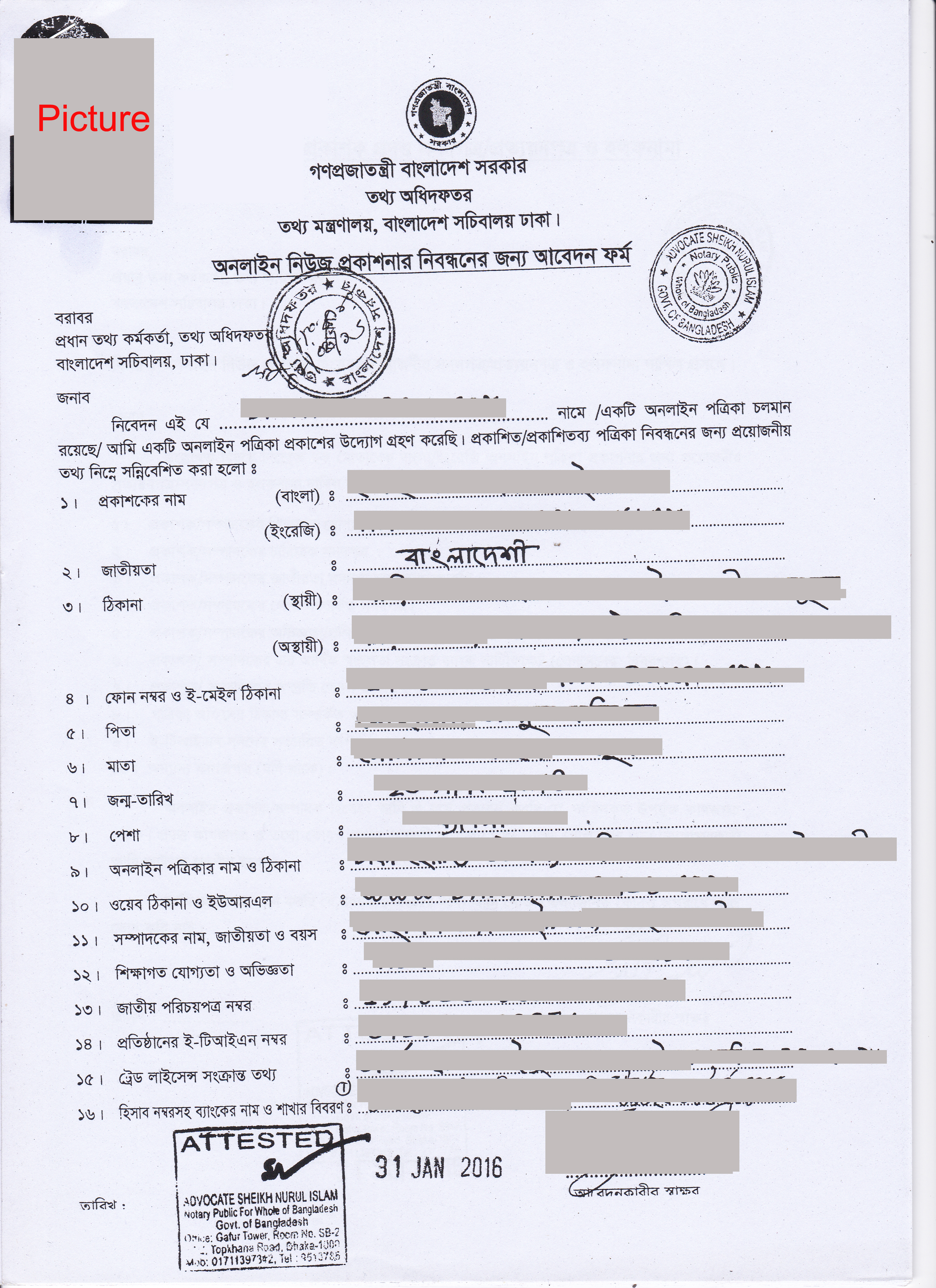 The government has made it mandatory for all online newspapers to be registered, including those already published online. The news portals will have to apply for the registration using the prescribed forms available at the Press Information Department (PID) website http://www.pressinform.govt.bd.